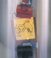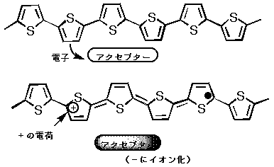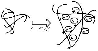 現在私が研究している導電性高分子とは、一口で言うと、しなやかさ等といった高分子の特徴(ビニール袋を思い出して下さい)を備えた半導体材料です。